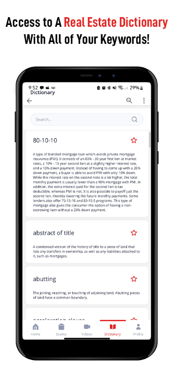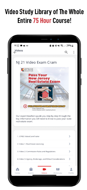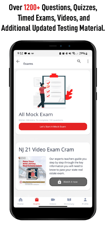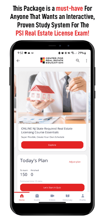 Pass your real estate exam with the CFREE App! We are everything real estate so let us share it with you. The app includes access to a real estate dictionary for all of your keywords, video library of all 21 chapters of the NJ Real Estate Text Book, and over 1200+ questions, quizzes, and timed exams! This package is a must-have for anyone who wants an interactive, proven study system for the PSI Real Estate License Exam!
